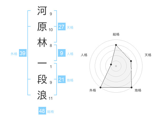 河原林 一段浪さんを姓名の画数から五運を鑑定