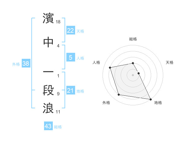 濱中 一段浪さんを姓名の画数から五運を鑑定