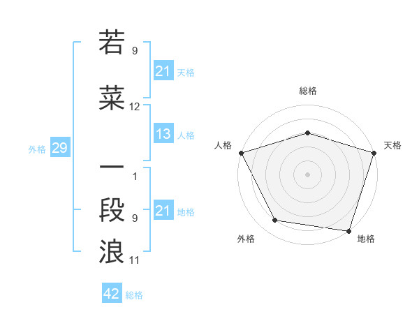 若菜 一段浪さんを姓名の画数から五運を鑑定