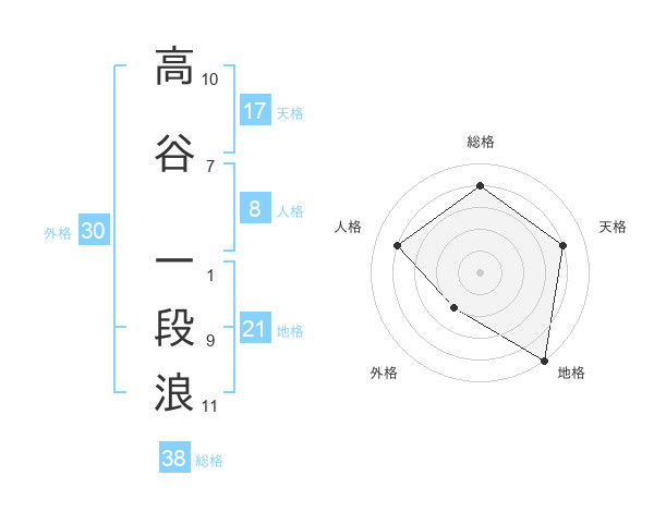 高谷 一段浪さんを姓名の画数から五運を鑑定