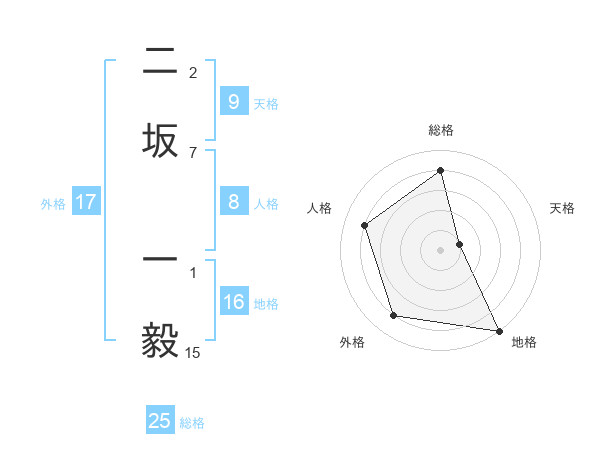 二坂 一毅さんの外格は17画の4点!