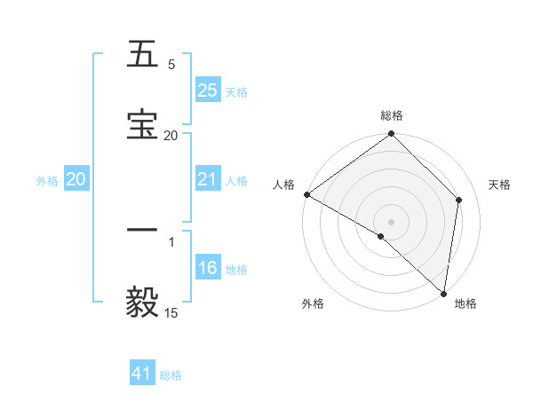 五宝 一毅さんを姓名の画数から五運を鑑定