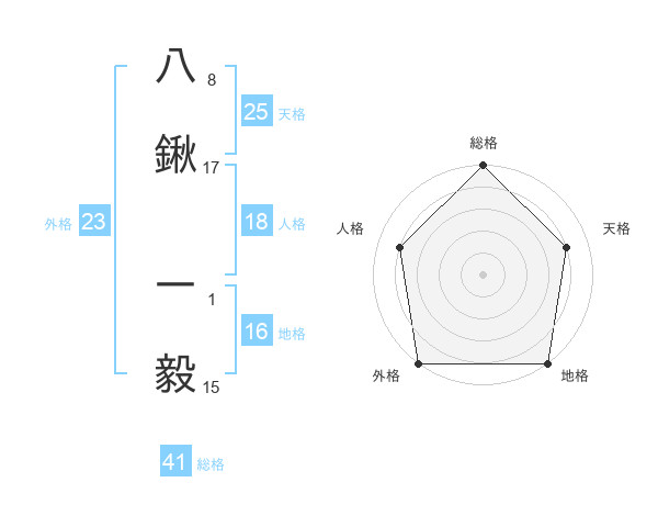 八鍬 一毅さんの外格は23画の5点!