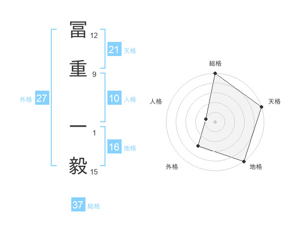 冨重 一毅さんの総格は37画の5点!
