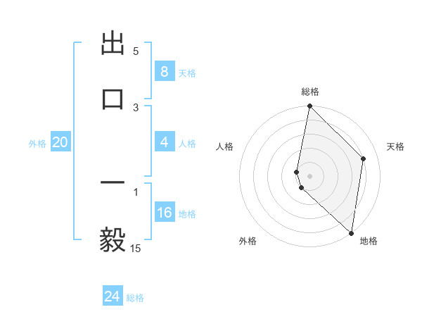 出口 一毅さんの総格は24画の5点!