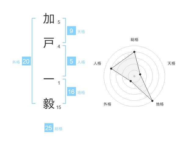 加戸 一毅さんの総格は25画の4点!
