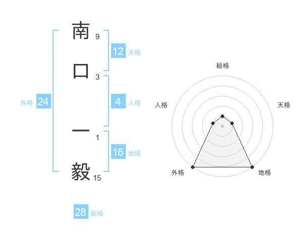 南口 一毅さんの総格は28画の1点!