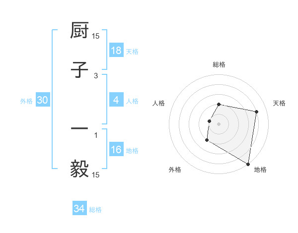 厨子 一毅さんの総格は34画の2点!