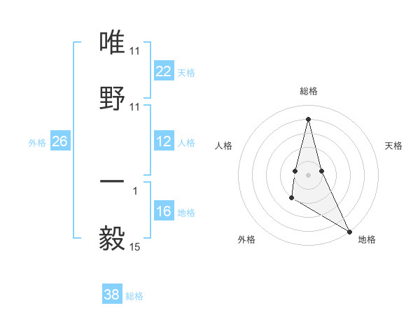 唯野 一毅さんの総格は38画の4点!