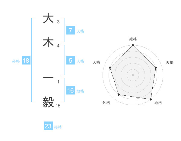 大木 一毅さんの総格は23画の5点!