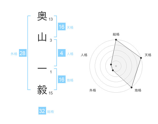 奥山 一毅さんの総格は32画の5点!