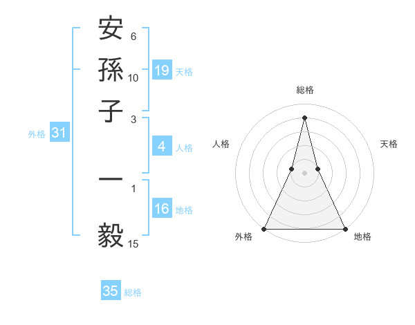 安孫子 一毅さんの総格は35画の4点!