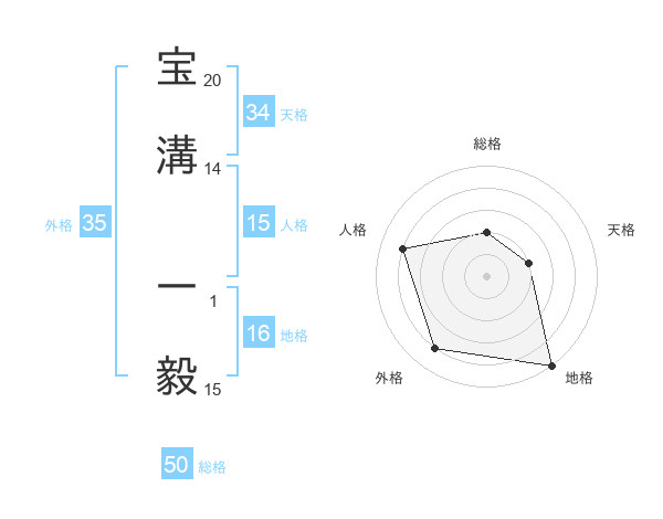 宝溝 一毅さんの総格は50画の2点!