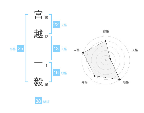 宮越 一毅さんを姓名の画数から五運を鑑定