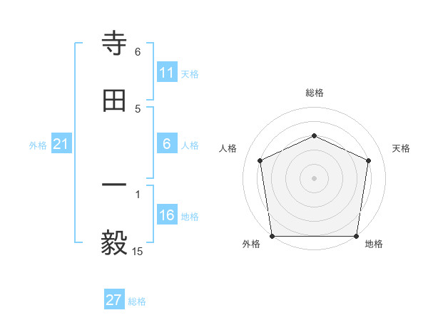 寺田 一毅さんの外格は21画の5点!