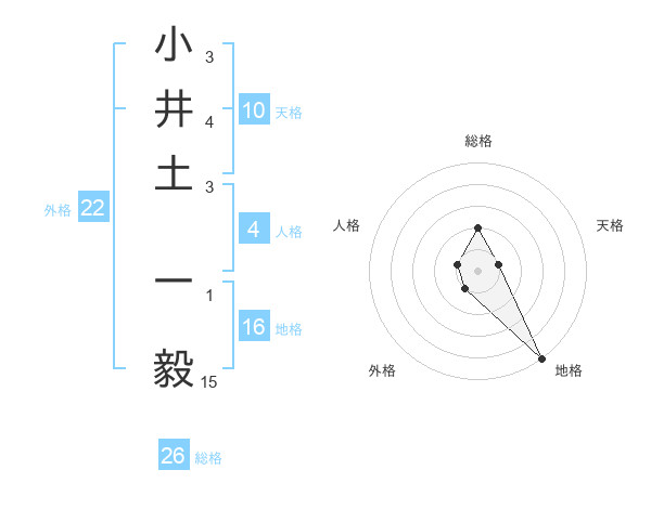 小井土 一毅さんを姓名の画数から五運を鑑定