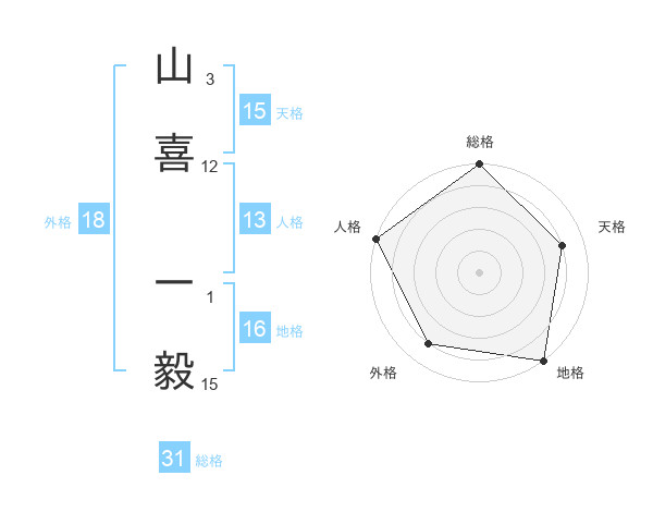 山喜 一毅さんの天格は15画の4点!