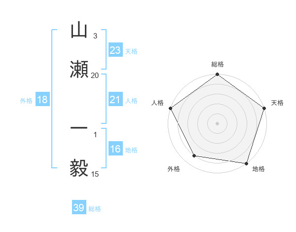 山瀬 一毅さんの天格は23画の5点!
