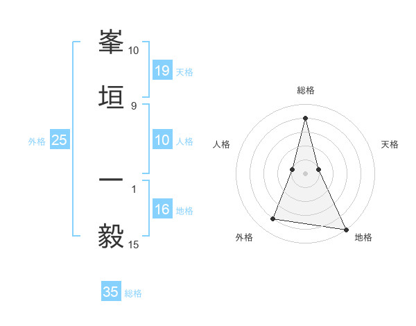 峯垣 一毅さんの天格は19画の1点!