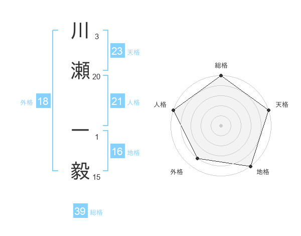 川瀬 一毅さんを姓名の画数から五運を鑑定