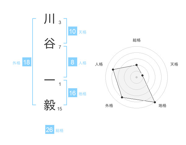川谷 一毅さんを姓名の画数から五運を鑑定