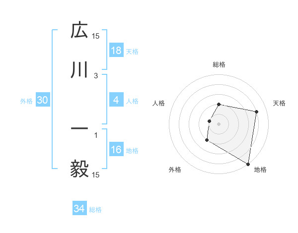 広川 一毅さんの天格は18画の4点!