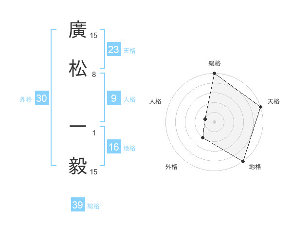 廣松 一毅さんの総格は39画の5点!