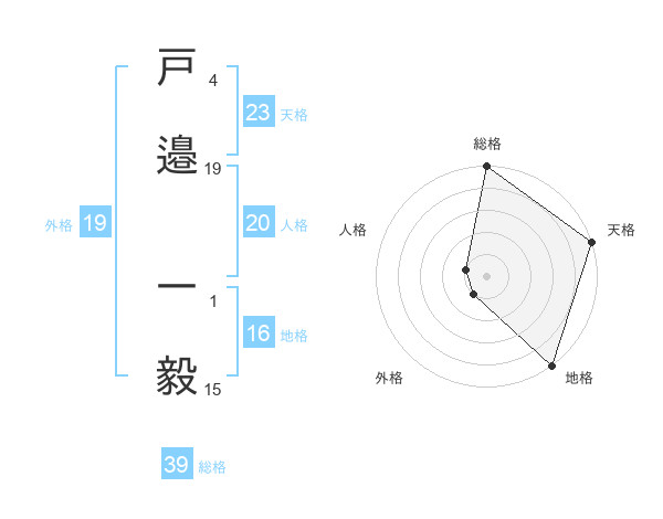 戸邉 一毅さんの天格は23画の5点!
