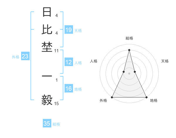 日比埜 一毅さんの外格は23画の5点!