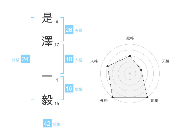 是澤 一毅さんの地格は16画の5点!