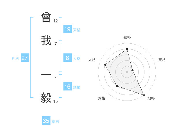曾我 一毅さんの天格は19画の1点!