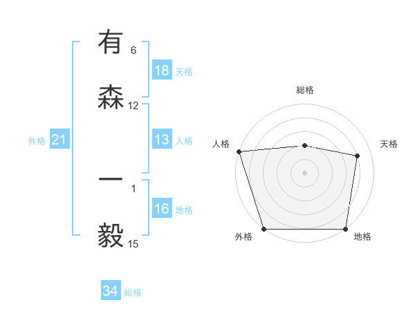 有森 一毅さんの外格は21画の5点!