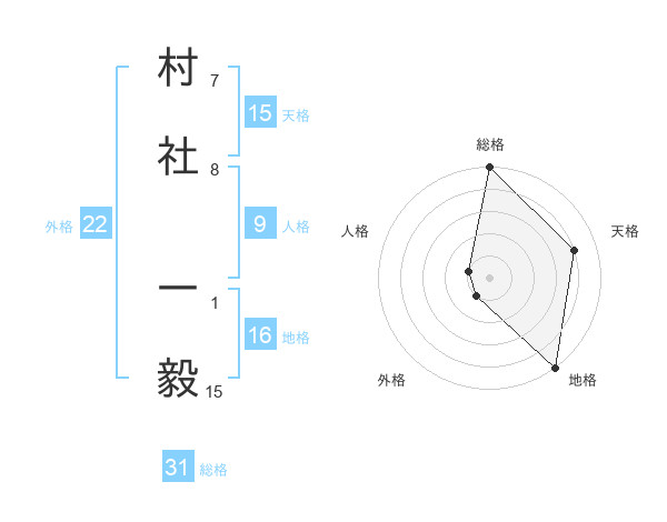 村社 一毅さんの総格は31画の5点!