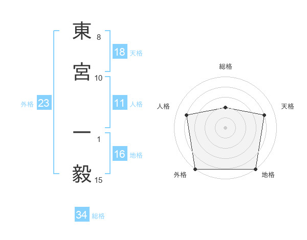 東宮 一毅さんを姓名の画数から五運を鑑定