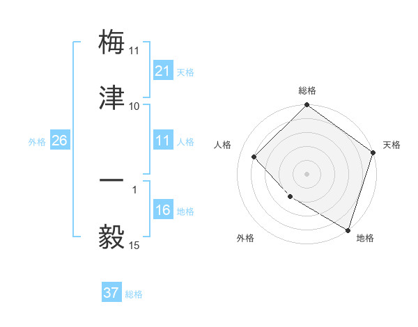 梅津 一毅さんを姓名の画数から五運を鑑定