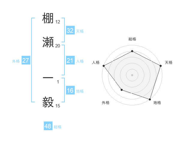 棚瀬 一毅さんを姓名の画数から五運を鑑定