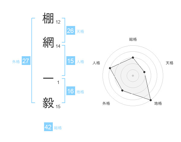 棚網 一毅さんを姓名の画数から五運を鑑定