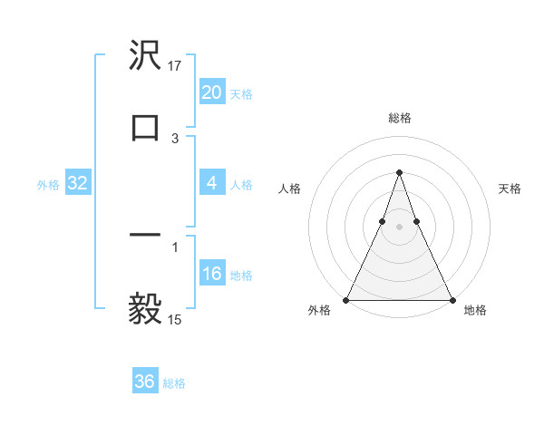 沢口 一毅さんの外格は32画の5点!