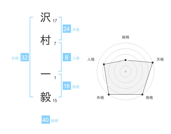 沢村 一毅さんを姓名の画数から五運を鑑定