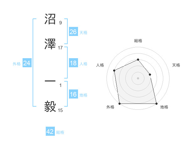 沼澤 一毅さんを姓名の画数から五運を鑑定