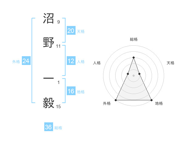 沼野 一毅さんを姓名の画数から五運を鑑定