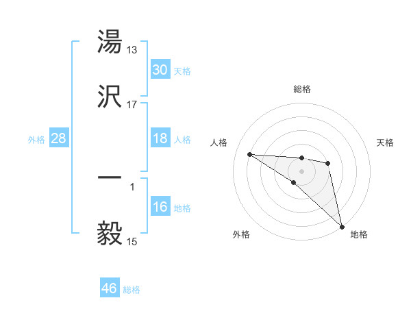 湯沢 一毅さんの天格は30画の2点!