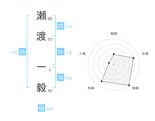 瀬渡 一毅さんを姓名の画数から五運を鑑定