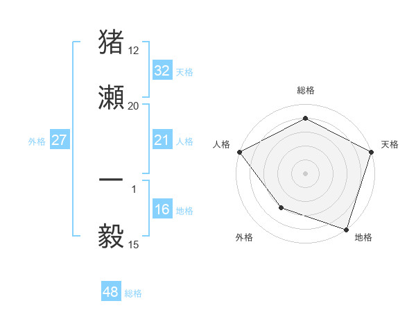猪瀬 一毅さんを姓名の画数から五運を鑑定