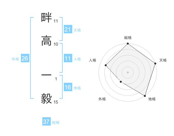 畔高 一毅さんを姓名の画数から五運を鑑定