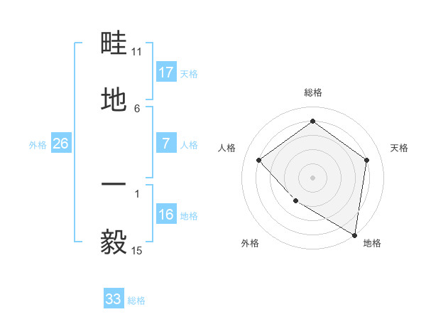 畦地 一毅さんを姓名の画数から五運を鑑定