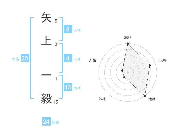 矢上 一毅さんの天格は8画の4点!