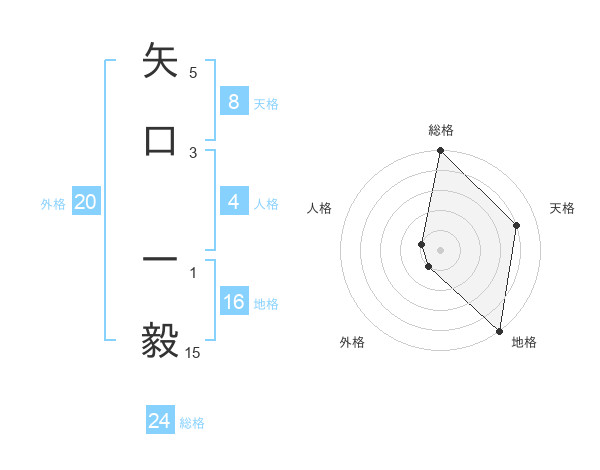 矢口 一毅さんの天格は8画の4点!
