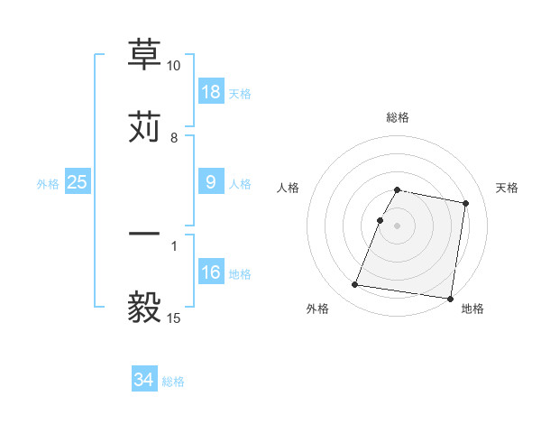 草苅 一毅さんの天格は18画の4点!