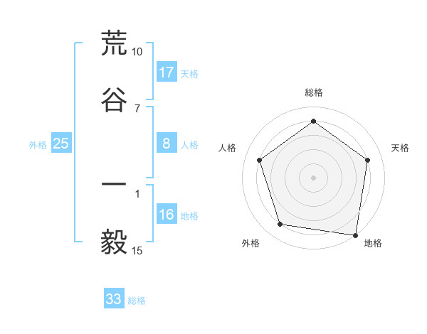 荒谷 一毅さんの外格は25画の4点!